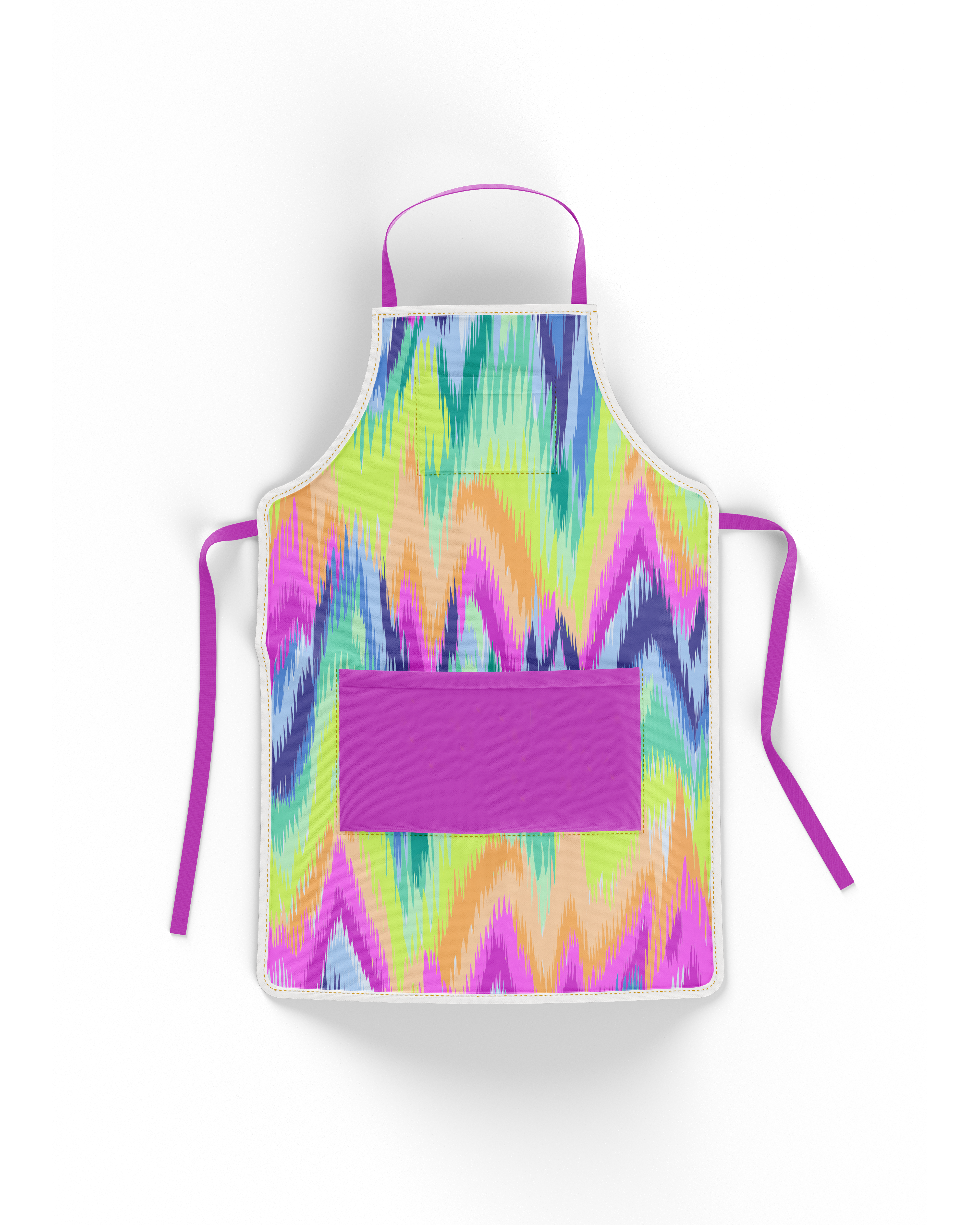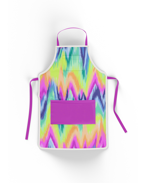 • The ties and edging on the apron can be customized with any color requested or we will identify one of the main colors from the design as the preferred color if one is not requested.